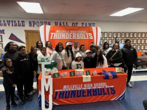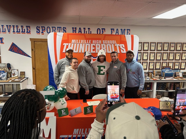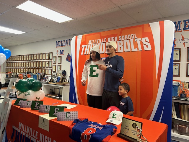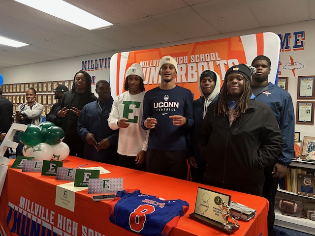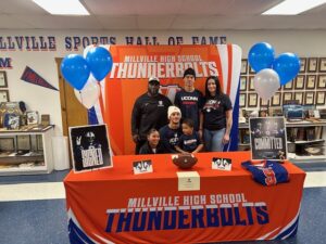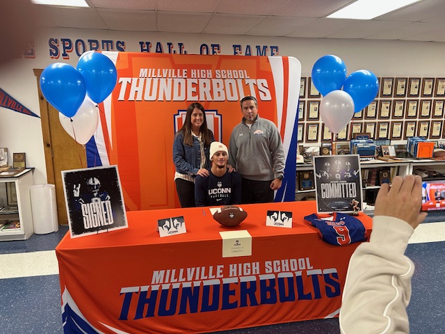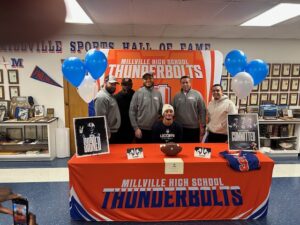 The Millville Thunderbolt Club recently hosted 2 Millville Thunderbolt Football Players and their families for their college signing event. Marty Collins and Jaden Jones who will attend Eastern Michigan University and University of Connecticut respectively signed their full athletic scholarship letters of commitment to the Division 1 universities. The Millville Thunderbolt Club wishes Marty and Jaden the best of luck with their respective college careers.